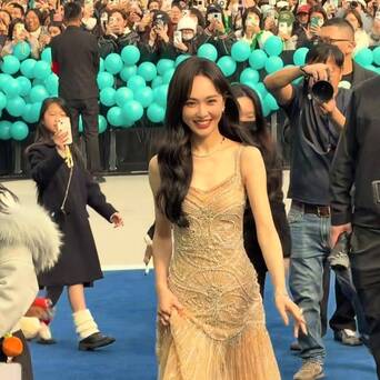 哪怕是在人群簇拥的活动现场,她也能稳稳hold住气场,抬手提裙的瞬间,温婉与贵气扑面而来,完美诠释了“岁月从不败美人”。